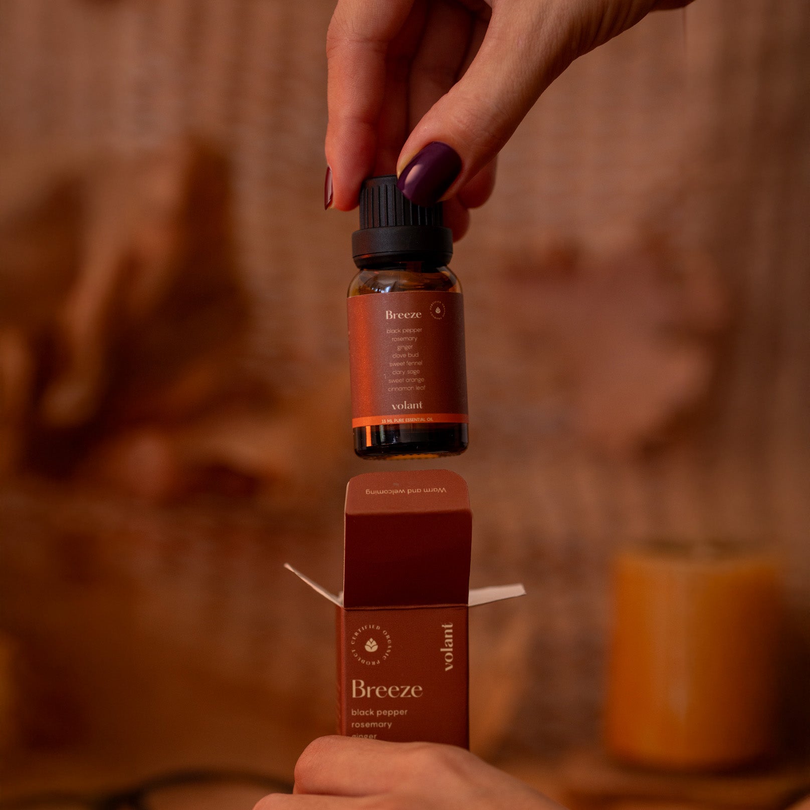 Økologiske Breeze er en hyllest til høsten, med noter av søt appelsin, ingefær og kanel, balansert med rosmarin og kryddernellik. Duften vekker assosiasjoner til å vende hjem, kvelder foran peisen og frisk høstbris.