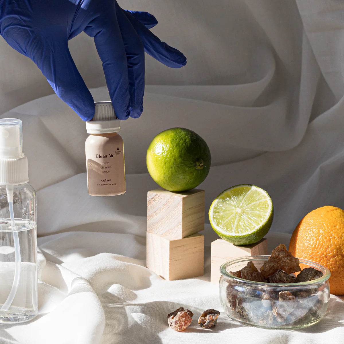 Volant Økologisk Clean Air er frisk og søt. Blandingen av Myrra, Mandarin og en dash med Sitron er inspirert av et rent og friskt hjem, klart for gjester. Diffuse Clean Air for å forfriske hjemmet eller tilsett et par dråper i vaskerutinen din.