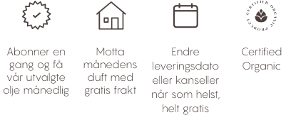 You sign up for the month's oil and pay monthly for access. We send you the oil every 30 days (deducted from the card on the same day we send it). At the start of each month, we share which product is the oil of the month, so you know in advance which oil is coming if you follow along. There is no commitment period, and you can pause, postpone, or cancel your subscription from my side at any time.