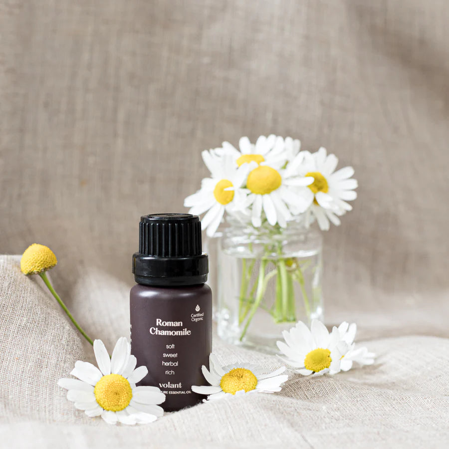 Økologisk Roman Chamomile er beroligende og god. Den vil avslappe både kropp og sinn og er perfekt å runde av dagen med. Brukes på kvelden for å skape en beroligende atmosfære før du skal legge deg. Masser den inn i huden med en bæreolje for å slappe helt av.