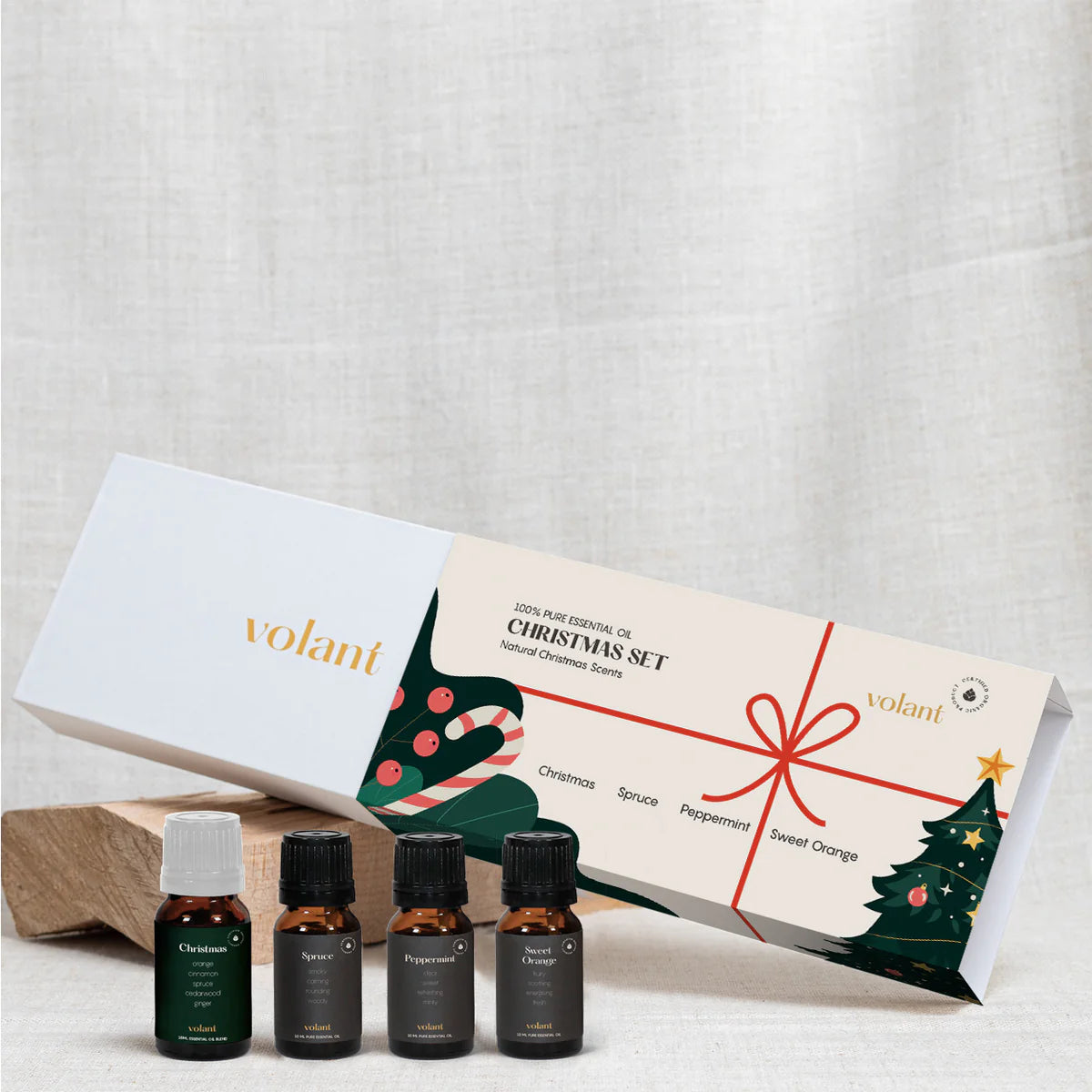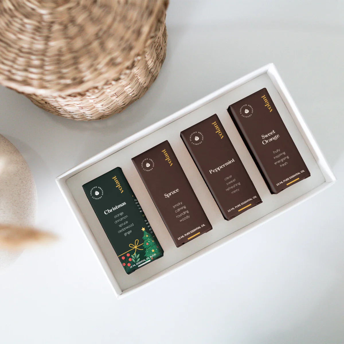 I settet: Christmas Blend, Sweet Orange, Peppermint, Spruce