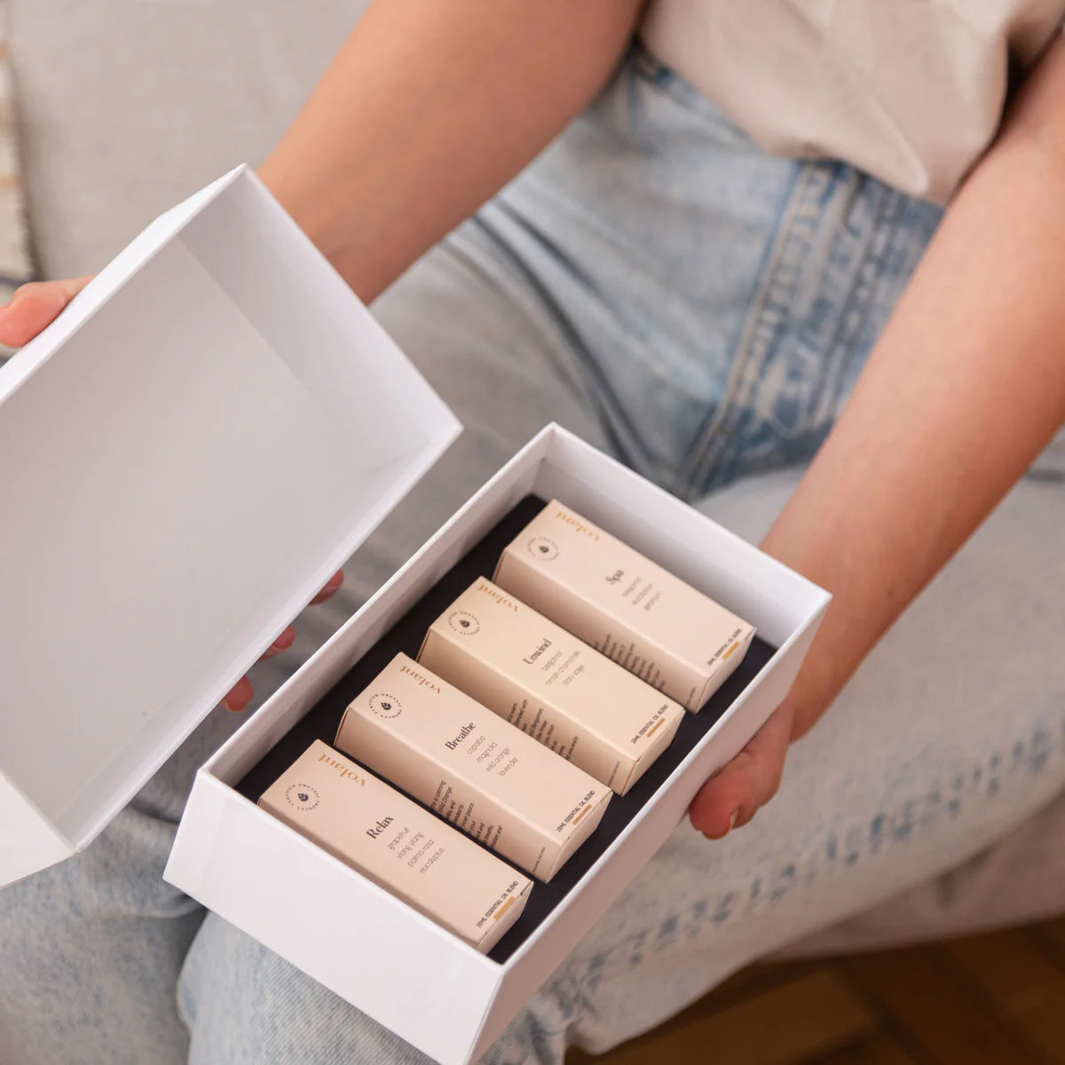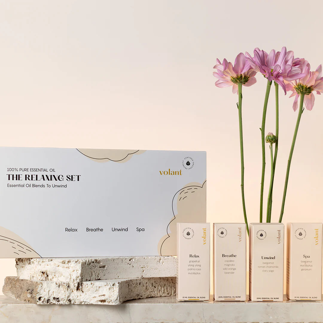 The Relaxing Set er fylt med ro og fred. Relax, Breathe, Unwind og Spa er alle designet for å gi deg en pause fra hverdagsstresset. Gi deg frihet. Skap stemningen fra en rolig blomstereng med disse aromaene. 926 kr verdi for 829 kr.